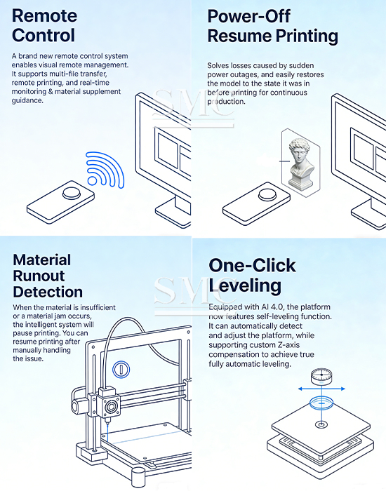 With fast print speeds (up to 500mm/s) and consistent output, this printer bridges the gap between design creativity and industrial efficiency, making complex, low-volume production both cost-effective and time-saving.